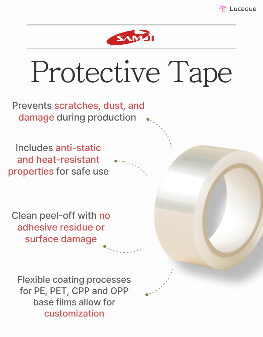 With over two decades of expertise and global partnerships with Samsung, LG Display, 3M, Hyundai, and more, SAMJI delivers protective tape solutions trusted by the world’s top manufacturers.